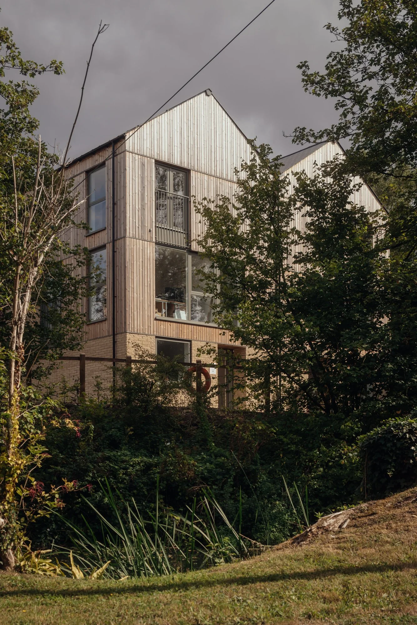 Nestled in the lush valley of the Bybrook River, The Timber Yard is a new collection of homes rooted in the riparian landscape of Box, deep within the Cotswold Area of Outstanding Natural Beauty. Once a working timber yard, the brownfield site has been sensitively transformed by a wholly local team into a layered, living community—where the architecture follows the rhythm of land, water, and village life.